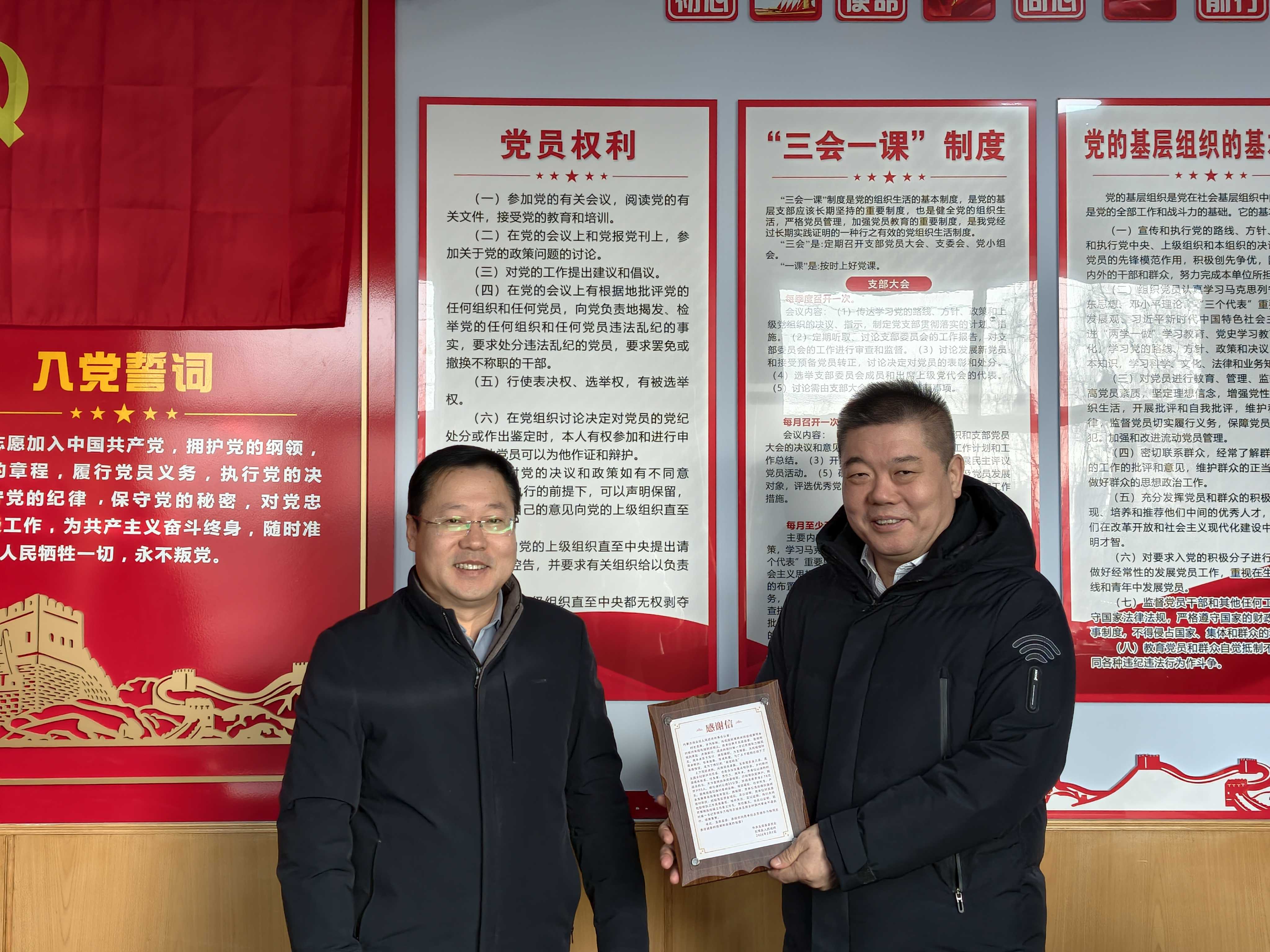 五原县党委组织部部长戴飞龙代表五原县党委、政府向我办递交了感谢信,就我办在当地乡村振兴工作中所作贡献表示肯定并表达谢意。
