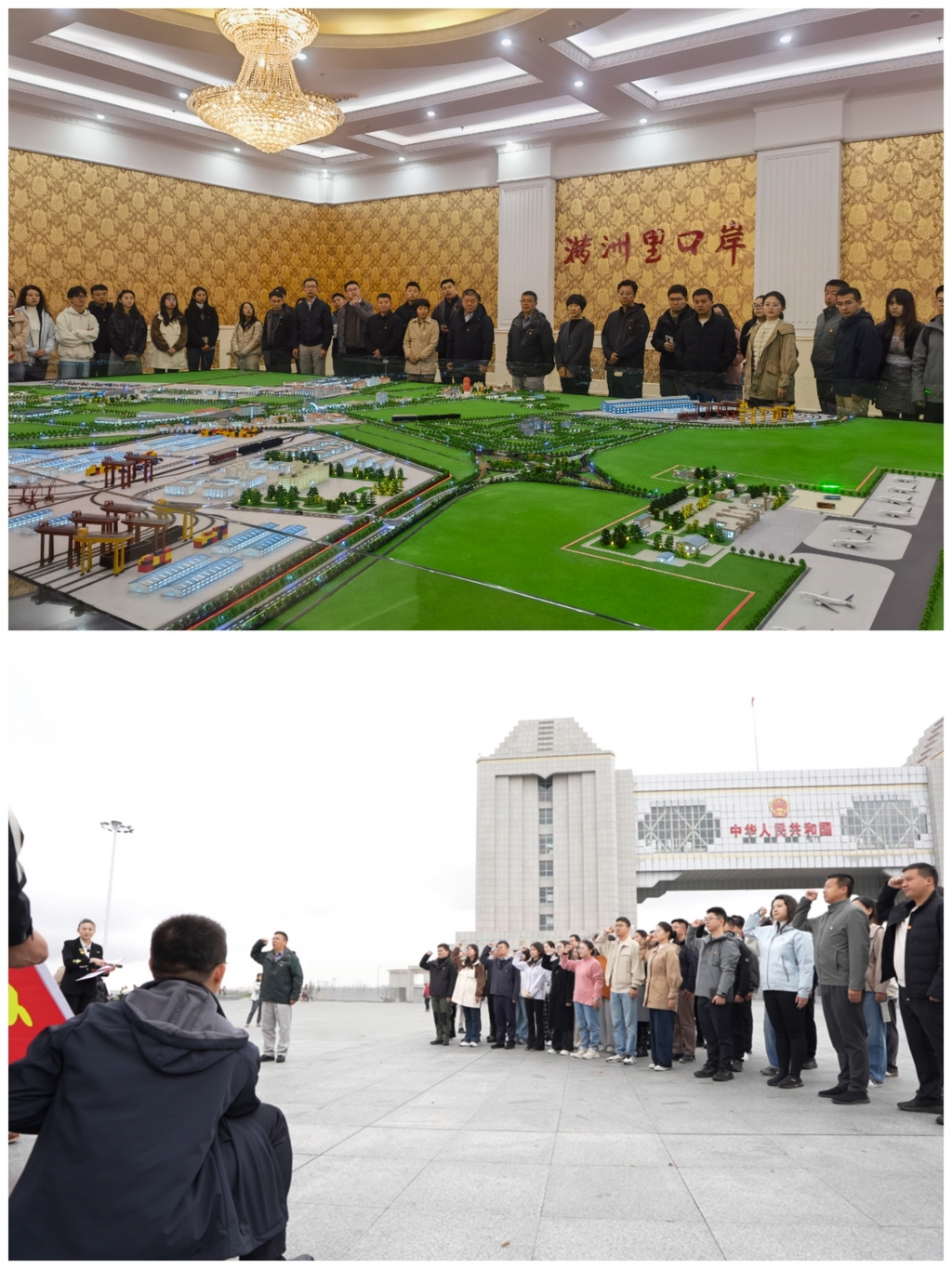 在中国最大陆路口岸——满洲里口岸,外交青年们走进口岸联检大楼,来到边民互市贸易区主要产品陈列区,了解口岸基础设施建设及互贸区运行情况,并在中共六大纪念馆前,集体重温入党誓词。
