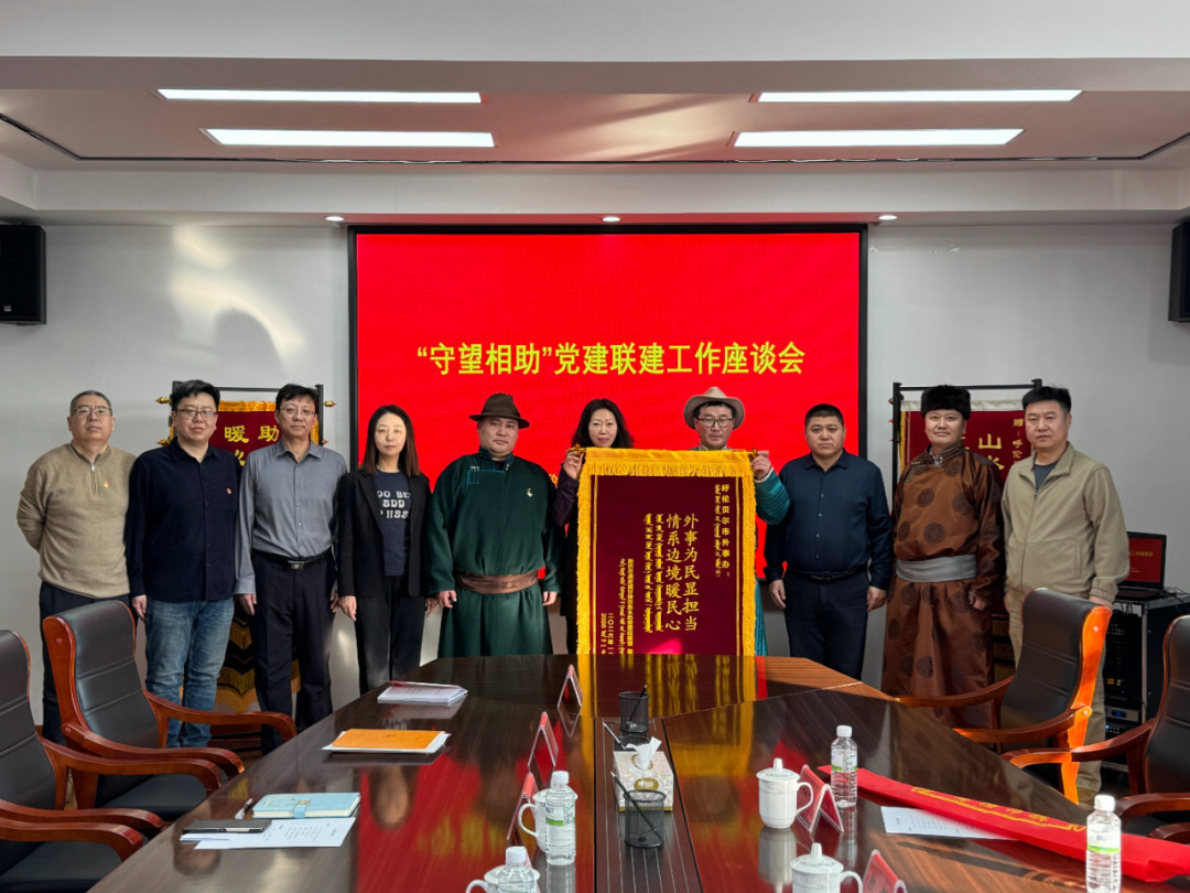 座谈会上,双方回顾了过去一年为推动“守望相助”党建品牌创建所做工作,谋划开展2026年联合党建活动。巴音塔拉嘎查对外事办全力推动“界内网外”国土管控与利用表示感谢,现场赠送锦旗一面。