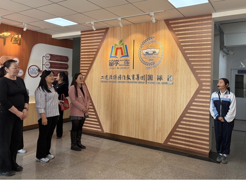 在市第一中学,在校蒙古国留学生化身“小小讲解员”,熟练运用中文与蒙古语,带领来访教师依次参观教学楼、学生宿舍、食堂、图书馆、实验室及艺术活动室,细致介绍学校办学历史、课程设置,分享自身在二连学习生活点滴。代表团成员纷纷表示,看到本国学生在二连浩特健康成长、学有所成,深感欣慰,也对我市优质的教育环境与浓厚的育人氛围有了更直观、更深刻的感受。