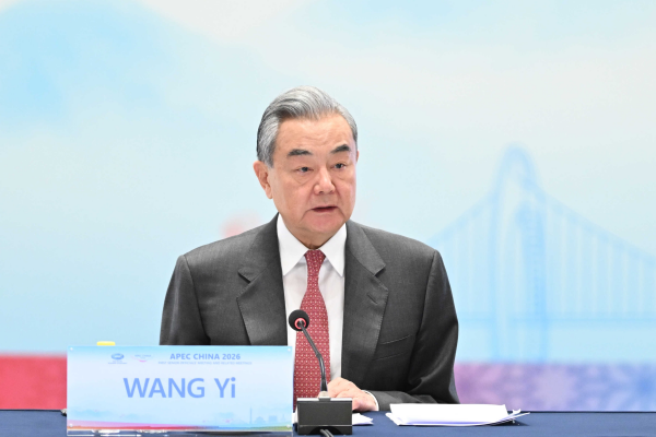 2026年2月10日,中共中央政治局委员、外交部长王毅在广州出席2026年亚太经合组织(APEC)第一次高官会开幕式并发表致辞。