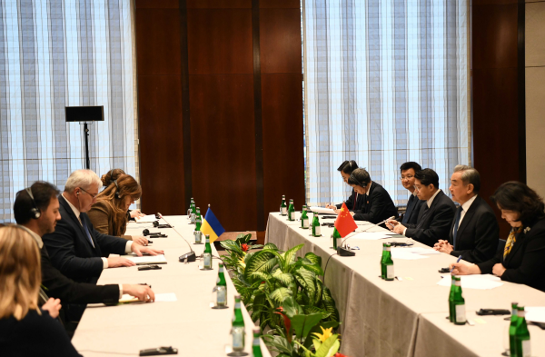 地时间2026年2月13日,中共中央政治局委员、外交部长王毅在出席慕尼黑安全会议期间会见乌克兰外长瑟比加。