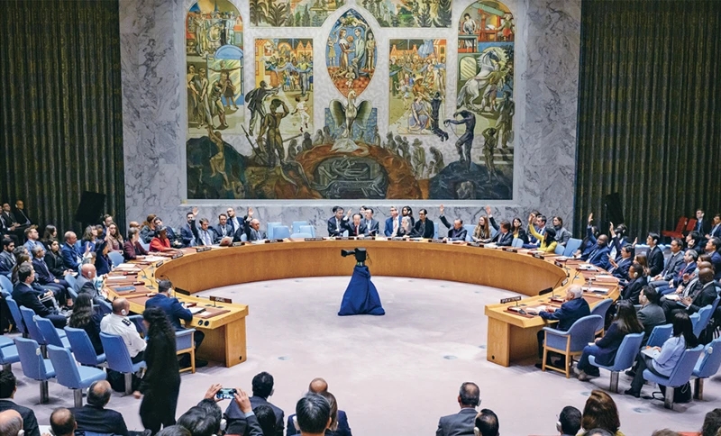 中国带头做国际法治的倡导者和维护者,坚定维护以联合国宪章为基础的国际法和国际关系基本准则,大力倡导尊重主权和领土完整、不干涉内政、禁止使用武力、和平解决争端等国际法基本原则。图为2023年11月15日,联合国安理会就巴以局势通过一项聚焦人道关切、突出保护儿童的决议,中国代表作为安理会当月轮值主席主持会议。新华社发
