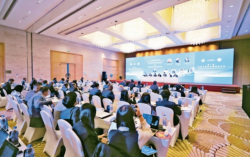 2024年4月23日,第二届发展中国家与国际法论坛在北京举行。图为与会学者围绕“和平共处五项原则与发展中国家”议题发言。外交部供图