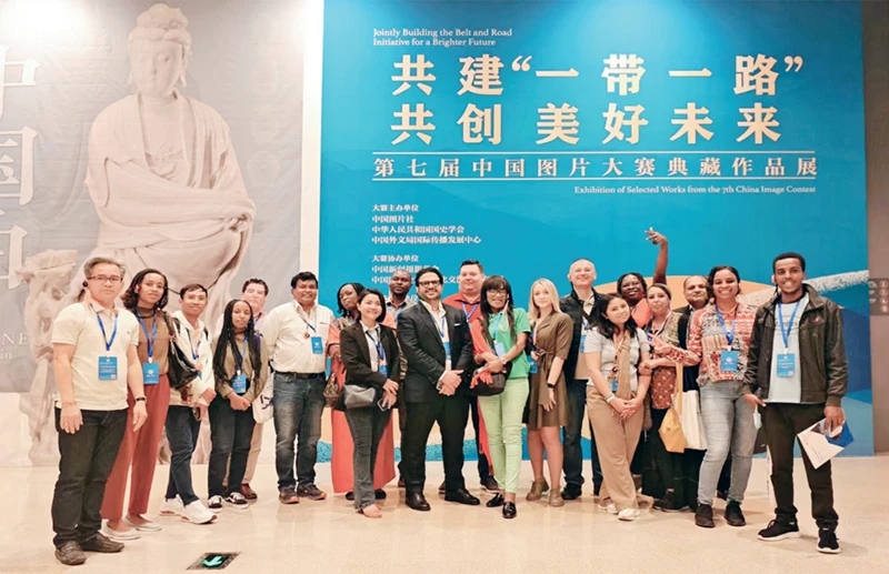 2024年4月19日至29日,第三期“一带一路”法治合作研修项目在北京举行。研修项目开设中国外交、中国法律制度、和平解决国际争端、国际投资法等课程,来自巴基斯坦、埃塞俄比亚、老挝等多国法律官员参加。图为学员参观国家博物馆“共建‘一带一路’ 共创美好未来——第七届中国图片大赛典藏作品展”。外交部供图